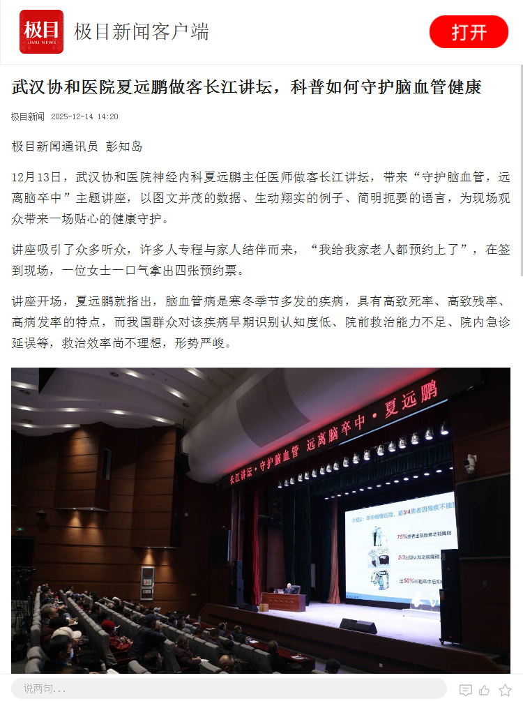 武汉协和医院夏远鹏做客长江讲坛,科普如何守护脑血管健康