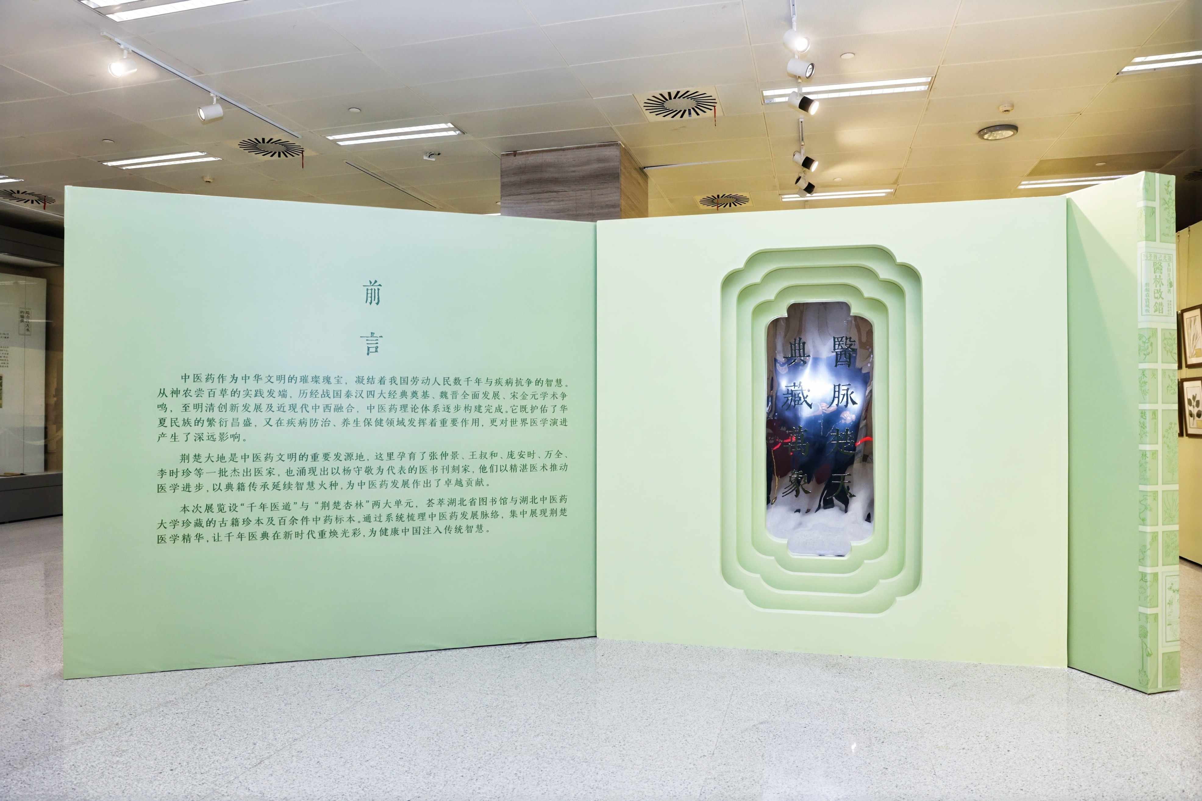 作为本次晒书大会核心内容,“医脉楚天 典藏万象——湖北中医药古籍文献特展”设立“千年医道”与“荆楚杏林”两大展区,分别从中华医药发展脉络与湖北地方医学成就两个维度,全方位展现中医药文化的博大精深。展览汇集百余部珍贵古籍文献、近百件中药标本,结合图文展板、实物陈列与多媒体互动,生动呈现中医药文化的深厚底蕴与荆楚医药的独特贡献,引领观众穿越千年,感悟中医的生命哲学与临床智慧。