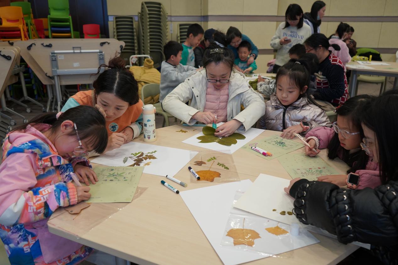 随后,活动进入了动手环节——制作植物标本。潘教授娓娓道来标本背后的科学意义:“标本不止是植物的‘照片’,更是它们生命的延续与自然的日记。”在家长们的协助下,孩子们小心翼翼地将采集来的叶片、花瓣进行整理、压平、固定,专注的神情宛如一个个小科学家。报告厅里弥漫着淡淡的植物清香和亲子协作的温馨氛围。最后的展示环节成了充满自豪感的“小小自然博览会”。孩子们举着自己精心制作的标本,分享观察心得,潘教授一一给予鼓励和点评。