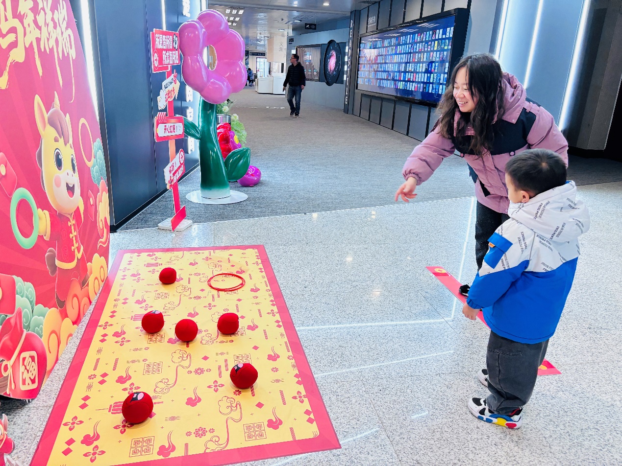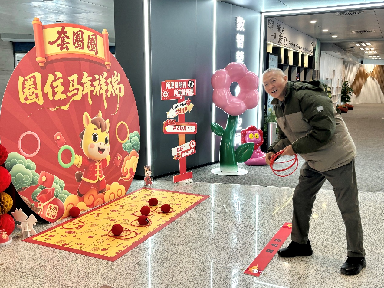 活动现场,一家齐上阵的温馨画面屡见不鲜,孩子们专注投掷,父母在一旁加油鼓励;更有经验丰富的老人兴致勃勃地向小朋友传授套圈“秘诀”。老少同乐,其乐融融,图书馆内洋溢着温暖而活泼的新春气息。一位从网上获悉活动特意赶来参与的读者表示:“省图这两年办的阅读活动都很有趣,不仅玩得开心,还能通过游戏体验图书馆丰富的电子资源,非常方便。”
