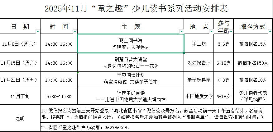 6Yue时空阅读计划2025年11月少儿活动公告及简介